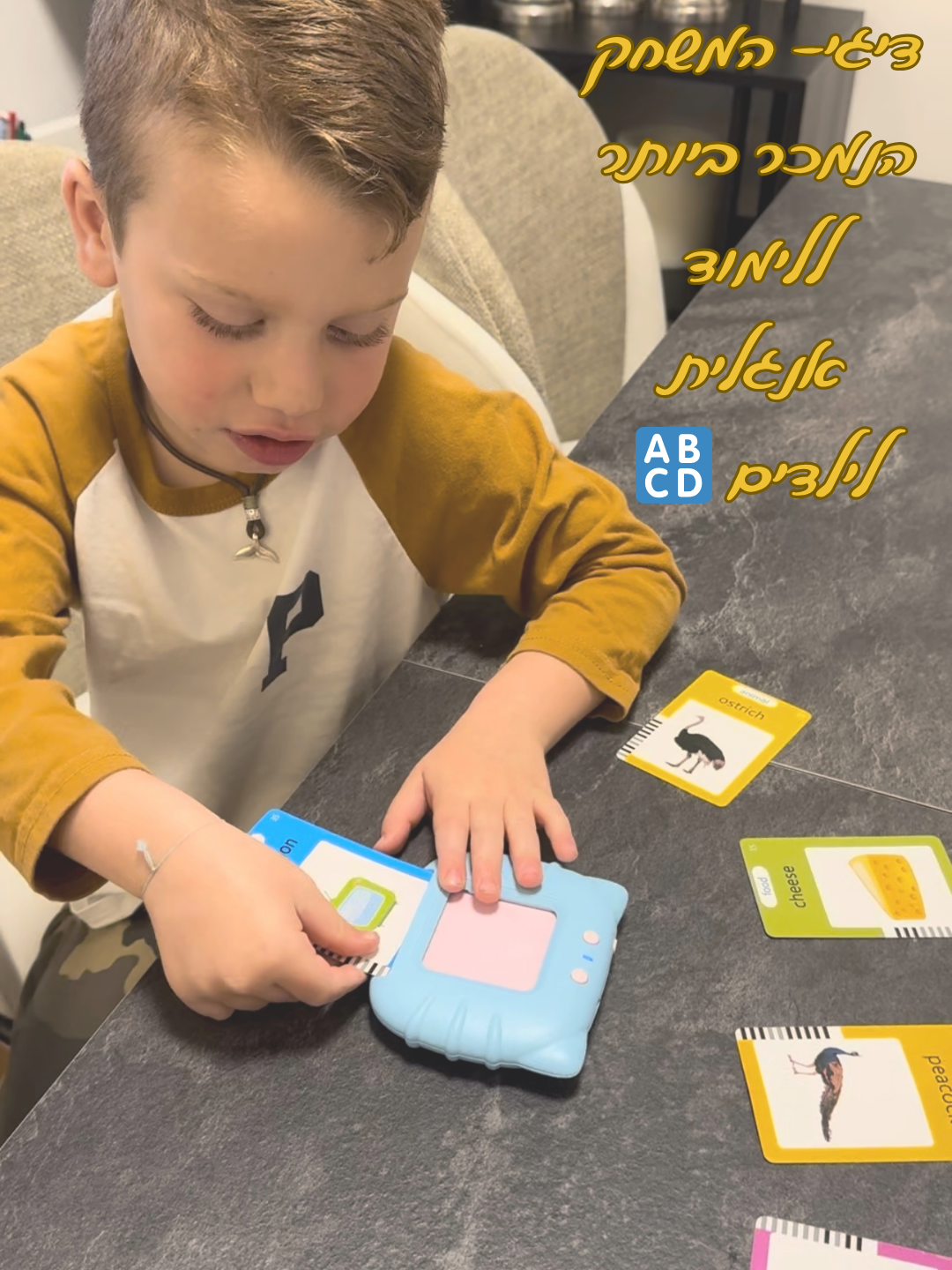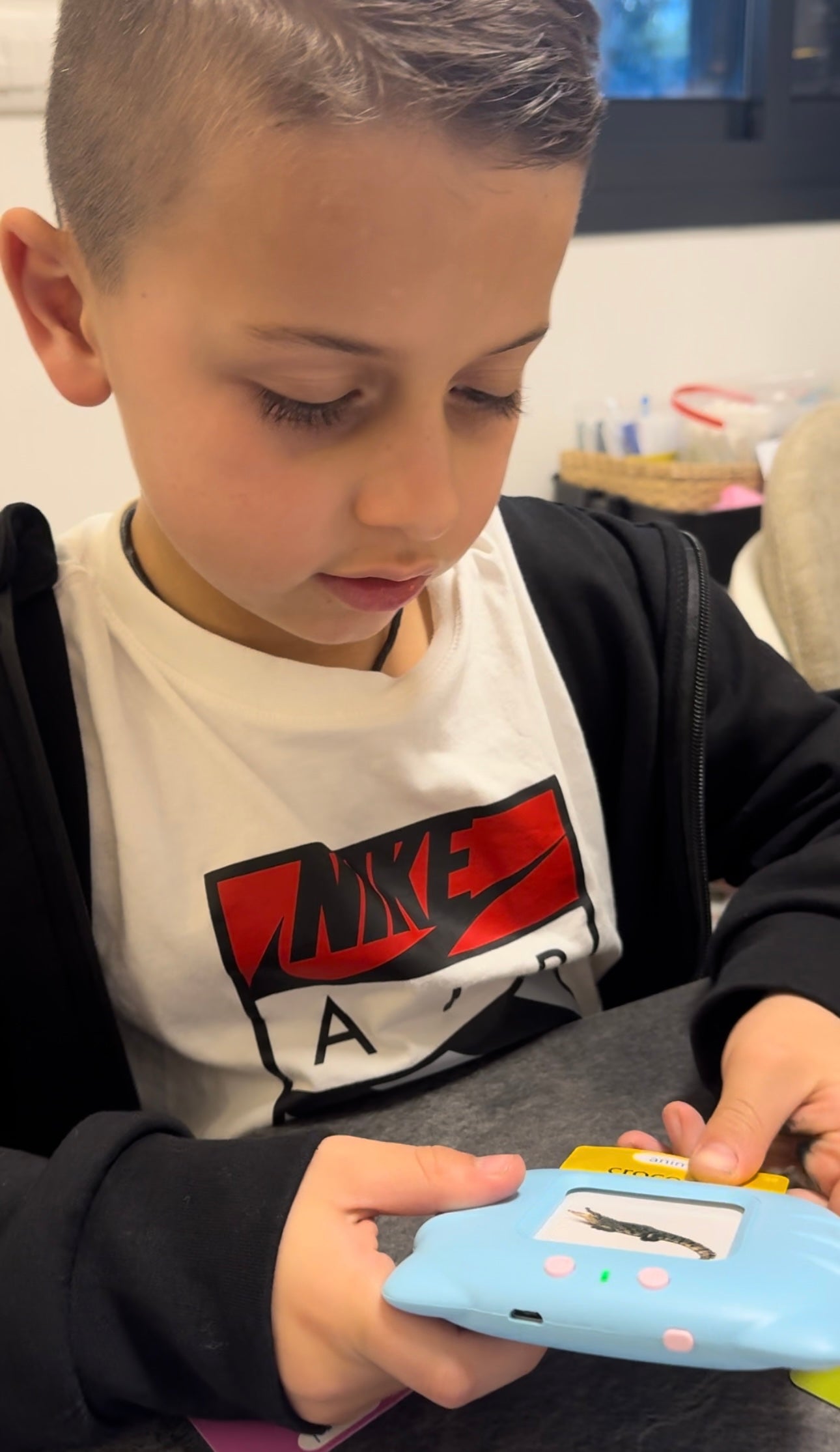אז איך זה עובד? פשוט מכניסים כרטיסיה שעליה מופיע איור של המילה, והמכשיר מקריא בקול באנגלית. דרך חווייתית ואינטראקטיבית לפתח אוצר מילים ולהכיר את השפה בצורה טבעית.