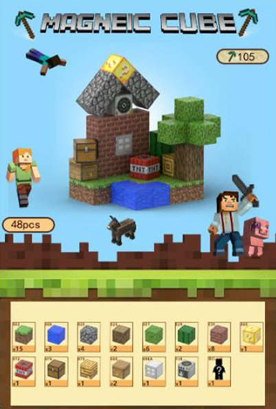 פאזל־קוביות מגנטי בסגנון Minecraft✨